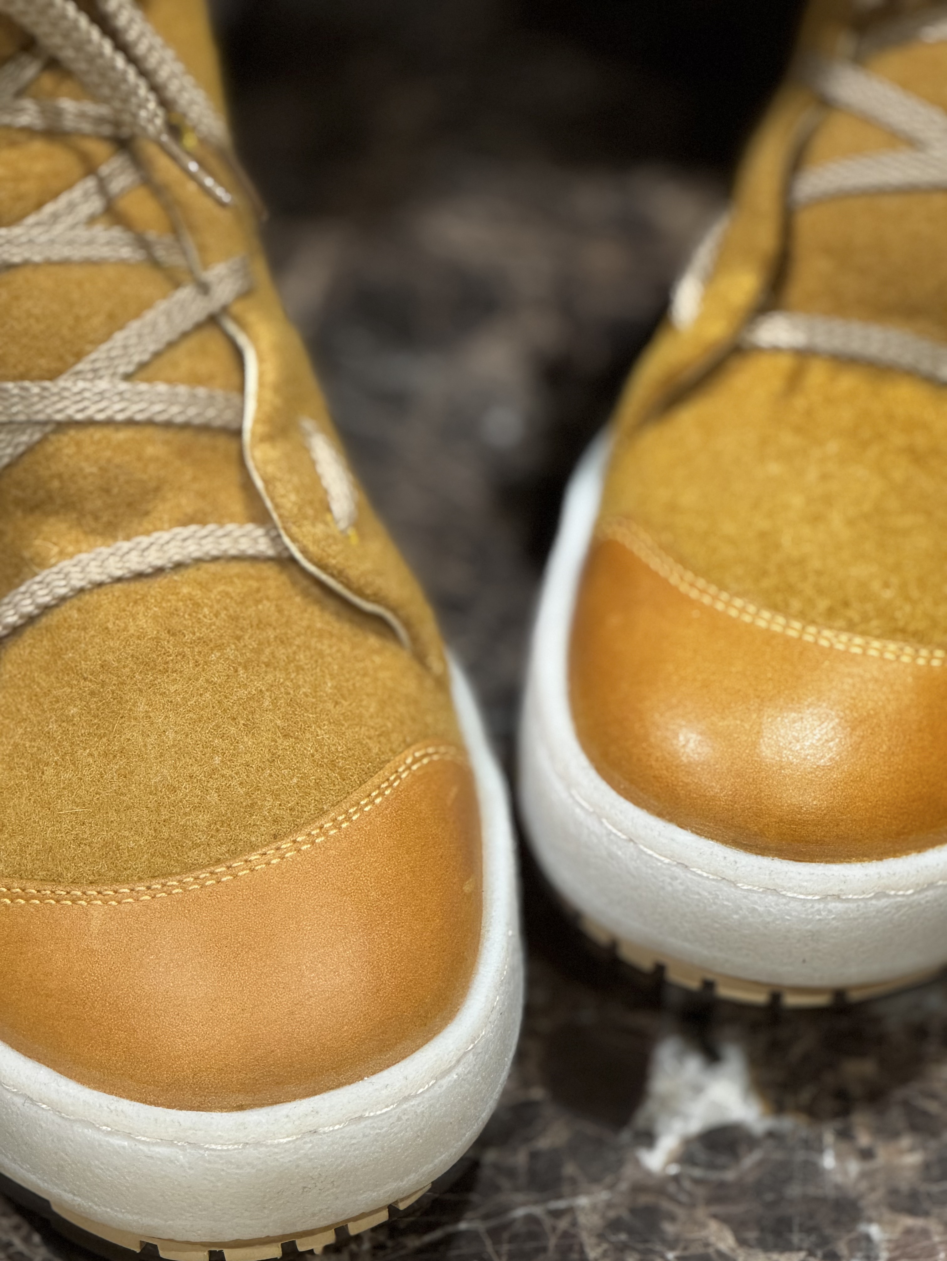 Шерстяной войлок превосходно удерживает тепло и воздухообмен, вставки из прорезиненной кожи защищают от грязи и намокания.